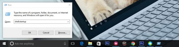 Đầu tiên bạn mở hộp thoại Run (Nhấn tổ hợp phím Windows + R) và gõ vào lệnh sau: shell:startup > OK