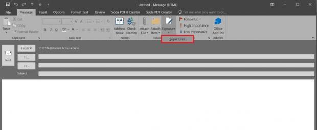 Trong cửa sổ soạn tin nhắn mới, chọn Signature > Signature... để tạo chữ ký mới.