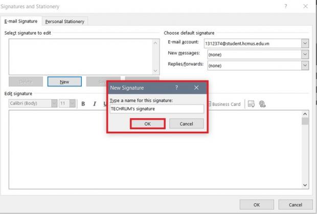 Nhập vào tên chữ ký mới muốn tạo. Sau đó nhấp OK.