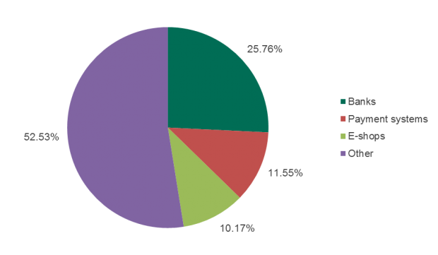 Những kẻ tiến hành tấn công tài chính đặc biệt thích sử dụng dữ liệu thuộc những ngân hàng đa quốc gia, hệ thống thanh toán phổ biến và cửa hàng trên Internet và các cuộc đấu giá tại Hoa Kỳ, Trung Quốc và Brazil. Danh sách thương hiệu đều giống nhau qua các năm, miễn là độ phủ sóng vẫn cao, vì thế những thương hiệu này chính là mục tiêu béo bở của tội phạm mạng.