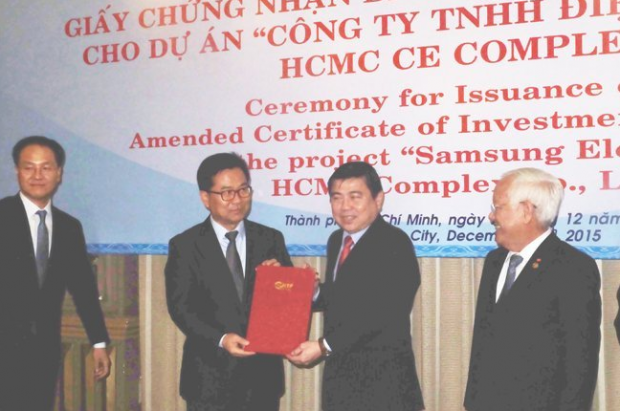 Samsung hiện có ba nhà máy tại Bắc Ninh và Thái Nguyên sản xuất điện thoại di động và một dự án tại TPHCM khởi công vào tháng 5-2015 sản xuất sản phẩm điện tử gia dụng công nghệ cao .