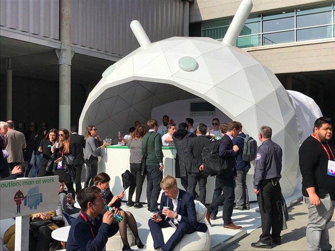 Trong khuôn khổ triển lãm, Google chỉ mang đến những gian hàng trải nghiệm công nghệ thực tế ảo (VR), nhưng thực tế, gian thú vị nhất của của Google là quầy thức uống. Các phóng viên và khách mời có thể uống miễn phí và “trả tiền” bằng cú đập tay.