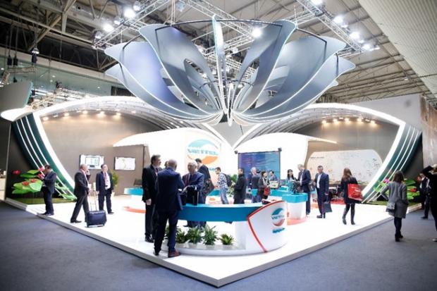 Hoành tráng hơn năm ngoái, Viettel dựng booth theo phong cách hoa sen công nghệ, thể hiện bản sắc Việt Nam và khát vọng hội nhập.