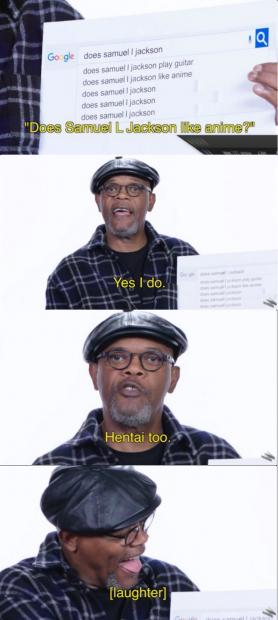 Trong một chương trình hỏi nhanh - đáp gọn trên kênh Wired, Samuel L.Jackson đã chia sẻ nhiều thứ về bản thân, từ sở thích, gia đình cho đến sự nghiệp. Tại buổi nói chuyện, có không ít câu hỏi thiếu i ốt, song cũng có vài câu thú vị. Mà thú vị nhất là lúc đến câu hỏi về sở thích. Câu hỏi là: 'Ông thích Anime chứ?'. Diễn viên 68 tuổi này đã trả lời ngay và luôn: 'Vâng tôi thích'. Rồi, dường như không cưỡng được việc phải 'khoe khoang' thêm thứ yêu thích đặc biệt khác, ông thêm: 'Cả Hentai nữa', rồi sau đó cười lớn.