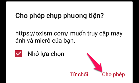 Bạn sẽ được yêu cầu cấp quyền sử dụng camera.