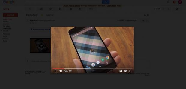 Cách đây không lâu, Google đã cho phép người dùng Gmail nhận file đính kèm dung lượng lên đến 50MB thay vì chỉ 25MB như trước. Giờ đây, “gã khổng lồ tìm kiếm' tiếp tục cải thiện dịch vụ email của mình để thuận tiện hơn với người dùng bằng cách cho phép xem trước video đính kèm mà không cần tải về máy