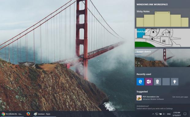 ⊞ Win + W: Mở cửa sổ Ink Workspace (Ghi chú, chụp màn hình).