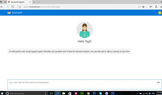 Dưới đây là một số ví dụ trò chuyện cùng nhân viên hỗ trợ ảo của Microsoft: