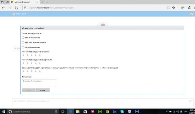 Sau khi giao tiếp với nhân viên hỗ trợ ảo, bạn có thể feedback lại để Microsoft cải thiện AI của họ, hãy nhấp chuột vào biểu tượng khuôn mặt để tiến hành feedback:
