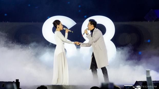 Chưa dừng lại ở đó, Đông Nhi, đại diện lớp ca sỹ trẻ sánh đôi cùng đàn anh Bằng Kiều, và sau đó là hợp xướng cùng đàn chị Thu Minh. Tất cả những yếu tố này đã tạo nên sự phấn khích cao độ cho hàng chục nghìn bạn trẻ thủ đô để rồi ra về thật trọn vẹn.