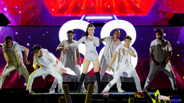 Sau đó thì Đông Nhi cùng Thu Minh làm cho sân khấu nóng hơn bao giờ hết với các bài hát cực kì sôi động: