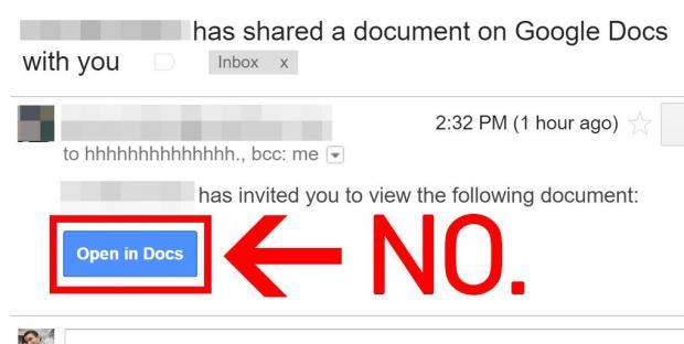 Trong thời gian gần đây, khá nhiều người dùng nhận được email với file Google Doc đính kèm, nếu bạn thấy một email tương tự thì đừng mở file này ra.