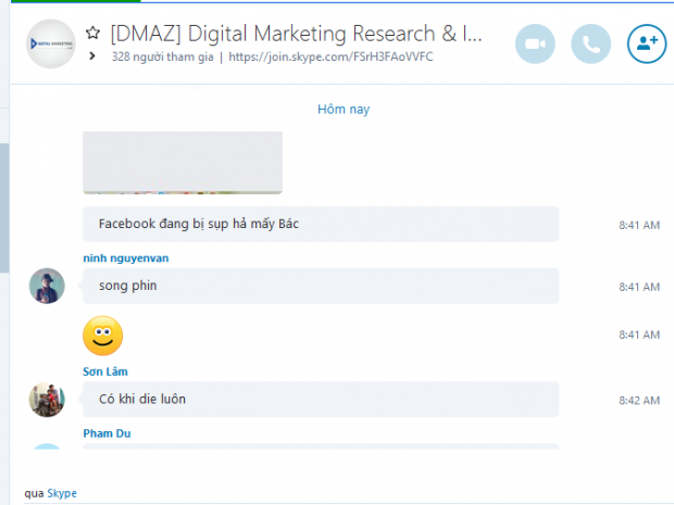 Trên nhiều hội nhóm Skype làm về Marketing mạng xã hội, người dùng liên tục chia sẻ những hình ảnh facebook không truy cập được với tâm trạng lo lắng sự việc này ảnh hưởng tới hoạt động buôn bán của họ.