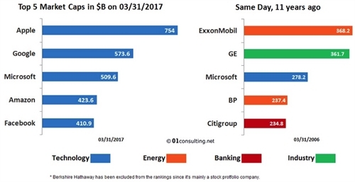 Bộ năm FAMGA (Google, Amazon, Apple, Facebook và Microsoft) của ngành CNTT đã trở thành 5 công ty có giá trị vốn hóa nhất thế giới.