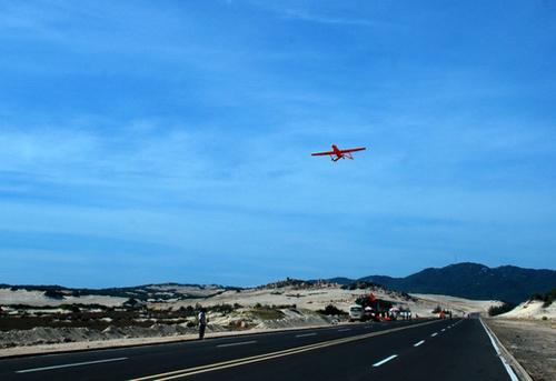 Sáu chiếc máy bay cất cánh tại bãi biển huyện Vạn Ninh, Khánh Hòa, cách TP. Nha Trang 100 km về phía Bắc. Đây là những chuyến bay đầu tiên trong chương trình bay phục vụ nghiên cứu khoa học biển trên vùng biển miền Trung.