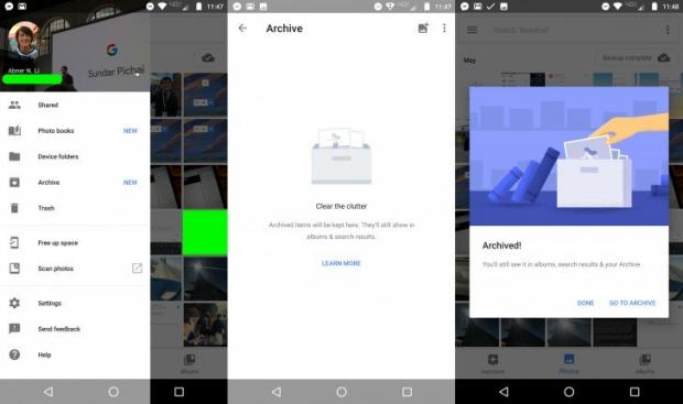 Hiện tai, Google đang phát hành dần Archive cho người dùng Android, bạn có thể kiểm tra xem mình có chưa bằng cách vào menu Setting bên góc trái, mục Archive sẽ nằm dưới Device folders. Dự kiến, sau khi lên Android thì Archive sẽ được đưa lên iPhone và phiên bản web của Google Photos.