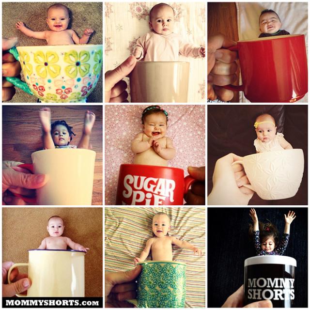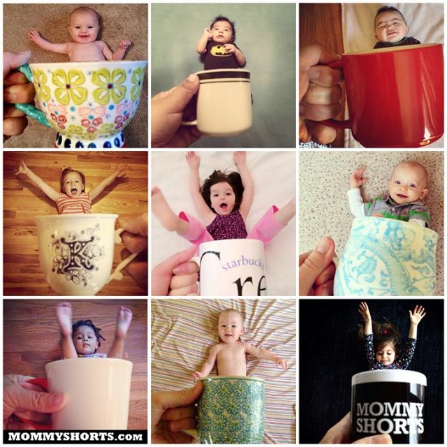 Xu hướng chụp ảnh này được gọi là 'Baby mugging', nghĩa là giả vờ bé đang ngồi trong một chiếc tách khổng lồ, và sau đó chụp ảnh bé. Hiện nay, các bà mẹ trên khắp đất nước Mỹ đã nhanh chóng update trào lưu này bằng cách đăng tải những bức ảnh của con cái họ.