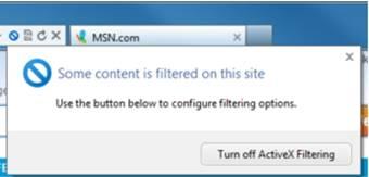 Bây giờ khi bạn truy cập vào một trang web có chứa ActiveX, bạn sẽ được cảnh báo rằng một số nội dung đã bị lọc hoặc khóa. Nếu bạn tin tưởng vào trang web, bạn có thể nhấp vào Turn off ActiveX Filtering để cho phép các ActiveX trên trang web đó hoạt động trở lại.