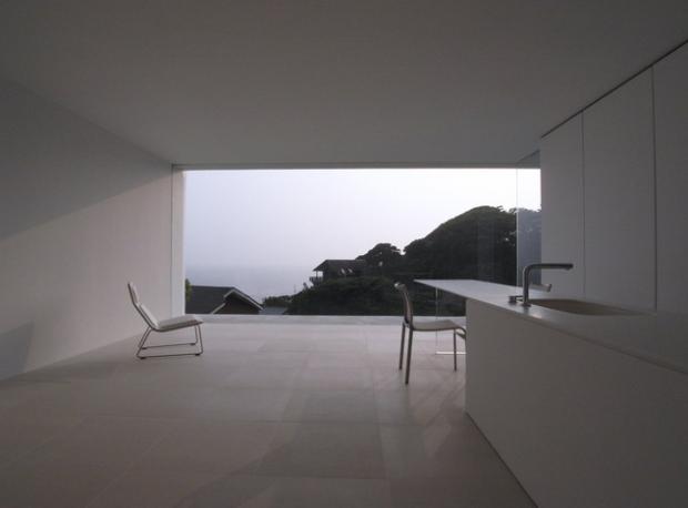 Tọa lạc đối diện vịnh Tokyo, chỉ cách phía Nam thành phố Yokohama nửa giờ đồng hồ, căn nhà T-House với thiết kế đơn giản dạng hình hộp bê tông được xây dựng dựa vào sườn đồi, đem lại cảm giác vững chãi mà không kém phần thanh thoát. Kết cấu xuyên thấu cho phép mở rộng không gian đến tối đa, nhìn mênh mông sông nước xunh quanh mà xem bạn có tin mình đang ở trong một căn hộ tí hon không?