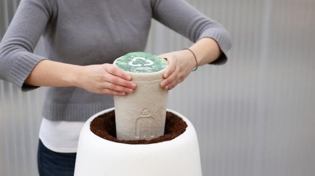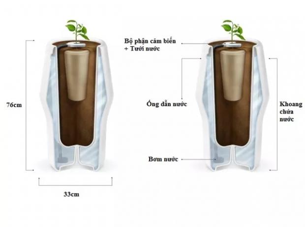 Bios Urn có khả năng tự động tưới nước cho cây và được giám sát bởi điện thoại thông minh.