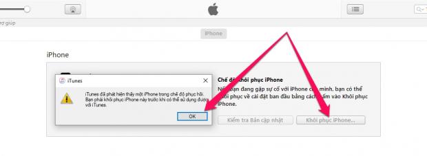 B5: Tại giao diện chính của iTunes sẽ xuất hiện một thông báo phát hiện iPhone (iPad) trong chế độ phục hồi. Bạn thực hiện tổ hợp phím Shift + chuột trái và nhấn vào nút Khôi phục iPhone (iPad) > truy cập tới vị trí lưu trữ và chọn bản Firmware iOS 10.3.3 đã tải về trước, iTunes sẽ tiến hành quá trình khôi phục trong khoảng 10 đến 20 phút (không cố định).