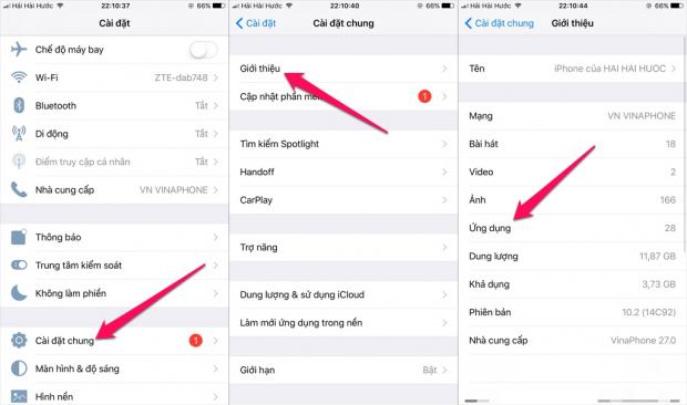Để kiểm tra những ứng dụng 32-bit mà bạn đã cài đặt hãy đi theo đường dẫn Cài đặt > Cài đặt chung > Giới thiệu > Ứng dụng. Những cái tên hiện ra sẽ là những ứng dụng 32 bit. Nếu không có gì, thì tất cả những apps trên máy bạn đã được cập nhật lên 64-bit.