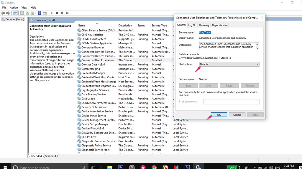 Microsoft compatibility telemetry là một trong những nguyên nhân gây ra hiện tượng Full Disk trên Windows 10. Các bạn hãy làm theo các bước sau để vô hiệu hóa dịch vụ này: