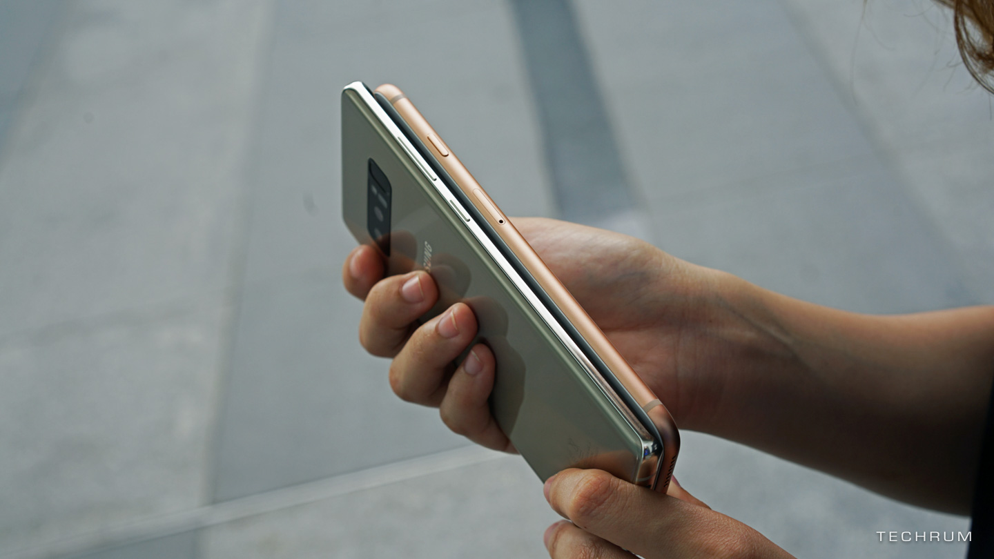 Khi cầm trên tay, nếu nói iPhone 8 / 8 Plus không có gì khác với 7 và 7 Plus là không đúng, mặt lưng kính mới cộng với cách phối màu của Apple đã tạo ra một nét riêng cho sản phẩm, mặc dù mặt trước vẫn có màu trắng. Bản thân mình thích mặt lưng kính, cầm đỡ trơn tuột hơn kim loại.