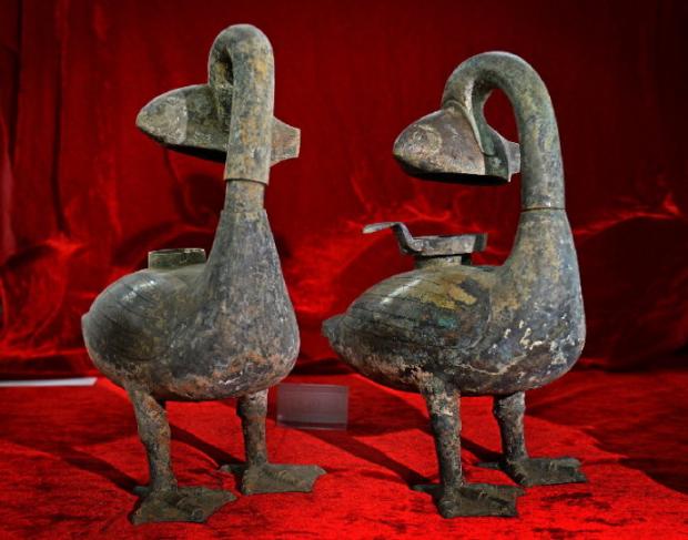 Hai cây đèn đồng 2.000 năm tuổi nuốt khói được tìm thấy trong lăng mộ của hầu tước Haihun vào năm 2015. Những chiếc đèn này có hình dạng con ngỗng ngậm cá trong miệng. Ánh sáng được phát ra từ con cá. Khói thải ra trong quá trình đốt sáp có thể thám vào cơ thể của con ngỗng qua con cá ngậm trên mỏ và lưu trữ trong bụng ngỗng.