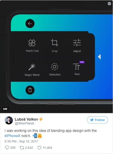 Vậy khi đời cho ta công cụ, thì ta phải học cách dùng nó thôi. Và đó cũng chính là điều mà các nhà phát triển ứng dụng cho iOS đang làm để chuẩn bị cho sự ra mắt của iPhone X vào tháng 11 tới đây. Chắc chắn sẽ có người hay, người dở, thế nhưng app của nhà thiết kế Luboš Volkov có thể sẽ nằm trong danh sách có ngoại hình đẹp và “chất” nhất khi tận dụng được phần “rãnh” kia một cách hoàn hảo.