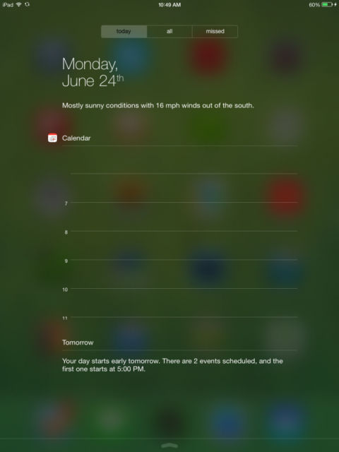 Phiên bản IOS 7 beta giành cho Ipad có giao diện khác biệt so với phiên bản dành cho iphone trước đó. Dưới đây là một số thay đổi chính của màn hình.