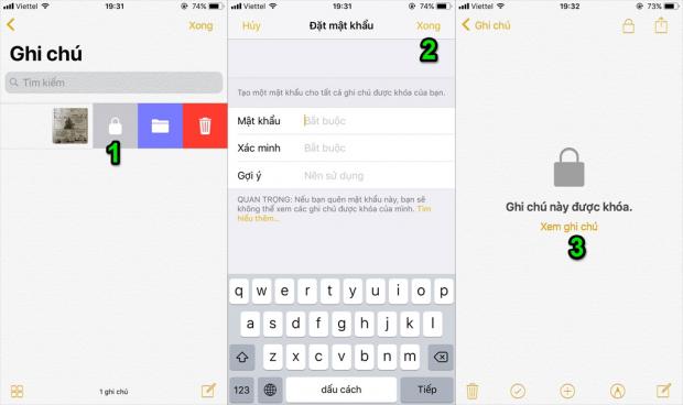 Để khóa ghi chú trên iOS 11 cũng khá đơn giản, chỉ cần vuốt từ phải qua trái trên bản ghi chú cần bảo vệ, sau đó nhấn vào biểu tượng chiếc khóa màu xám trên thanh công cụ mở rộng và tiến hành thiết lập mật mã là xong.