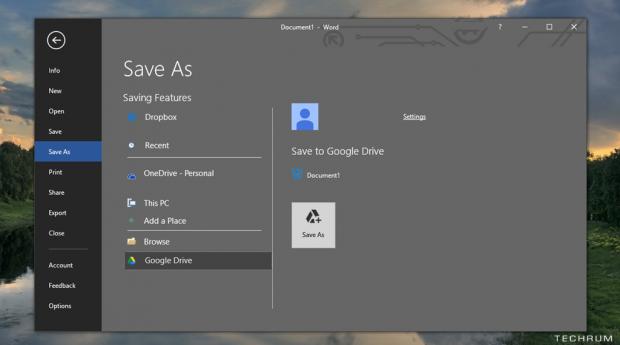 Nếu để ý, bạn có thể thấy MS Office 2016 có một hạn chế nhỏ trong các lựa chọn lưu dữ liệu, đó là việc bạn không thể thêm các thư mục cục bộ làm vị trí lưu dữ liệu trong bảng lựa chọn “Save as”. Thêm vào đó, MS Office 2016 chỉ ghi nhớ các vị trí gần đây mà bạn đã lựa chọn và lưu dữ liệu vào hoặc mở tập tin từ đó. Và nếu bạn đang sử dụng Windows 10, thì OneDrive sẽ được hiển thị trong danh sách các lựa chọn lưu dữ liệu của MS Office 2016.