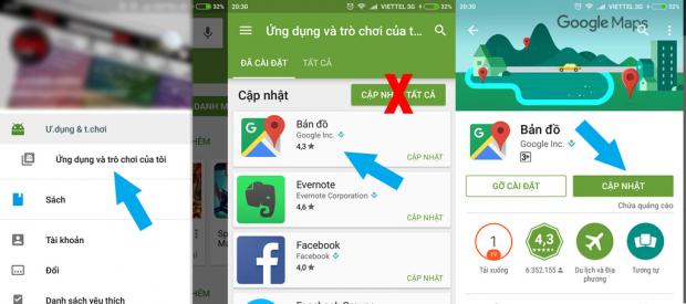 Để thực hiện thao tác này, bạn cần bật cửa hàng CH Play > chọn mục 'cài đặt' > chọn mục 'tự động cập nhật ứng dụng' > chọn 'không tự động cập nhật ứng dụng'. Mặc dù thao tác này sẽ tắt toàn bộ thông báo cũng như tự động nâng cấp phiên bản mới cho ứng dụng, tuy nhiên chúng ta vẫn có thể chọn từng ứng dụng riêng để cập nhật thủ công.