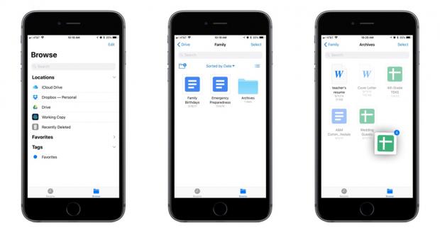 Cụ thể trong bản cập nhật Drive v4.2017.37510, Google đã bổ sung các tính năng quản trọng giúp người dùng quản lý file trên đám mây và thiết bị (iPhone, iPad) với một giao diện duy nhất. Bạn có thể thực hiện những thao tác quen thuộc như sao chép, cắt dán hay di chuyển vị trí lưu trữ từ ứng dụng (hoặc thư mục) này sang ứng dụng (hoặc thư mục) khác. Thậm chí là tải trực tiếp file trong Files lên tài khoản Drive mà không cần mở ứng dụng riêng biệt.