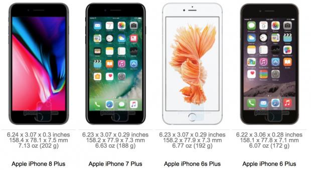 Thêm vào đó, trang PhoneArena còn 'ví von' iPhone 8 Plus giống như một chiếc Nokia E90 Communicator cực kỳ cồng kềnh ở thập kỷ trước với trọng lượng 210g. Các thiết bị 'Plus' trước đây của Apple đều có trọng lượng nhỏ hơn bao gồm: iPhone 7 Plus (188 gram), iPhone 6s Plus (192 gram) và iPhone 6 (172 gram).