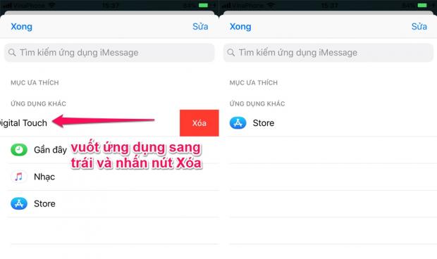 Tại giao diện tùy chỉnh, bạn chỉ cần buốt ứng dụng sang bên trái màn hình và nhấn vào nút xóa khỏi mục ưa thích. Hoặc nhấn nút Sửa và chạm vào biểu tượng dấu (-) trên ứng dụng để xóa khỏi mục ưa thích.