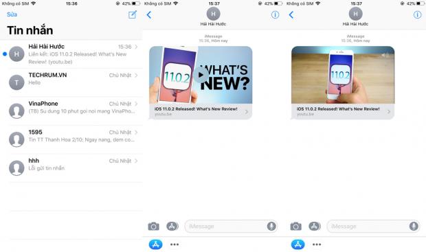 Đối với người được nhận video chia sẻ, có thể tùy chọn xem trực tiếp ngay trên giao diện nhắn tin iMessage với một số công cụ cơ bản như bật/tắt tiếng, xem full màn hình khi nhấn đúp vào video v.v... hoặc chuyển tiếp liên kết video sang ứng dụng YouTube nếu muốn.