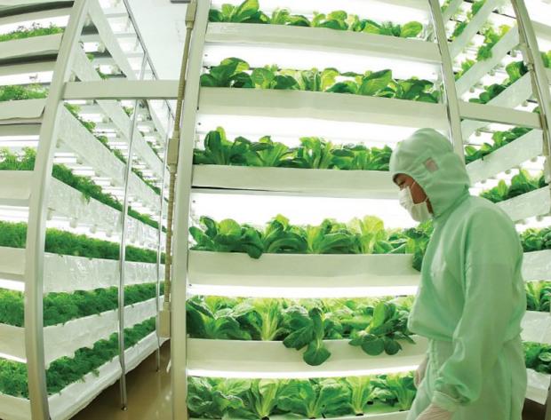 Hiện tại, các loại sản phẩm chính của nông trại bao gồm rau diếp, cải bắp,... được trồng hoàn toàn trong nhà kính, đảm bảo không chịu sự ảnh hưởng của dịch bệnh, vi khuẩn, côn trùng, điều kiện thời tiết và tất nhiên là lượng hóa chất bảo vệ thực vật là bằng 0. Mô hình này đang được áp dụng rất rộng rãi tại Nhật để cung cấp rau sạch cho người dân. Một cơ sở ở Kyoto với diện tích chỉ 2800 mét vuông nhưng có thể đạt diện tích canh tác lên tới gần 5300 mét vuông nhờ vào cách bố trí theo dạng từng tầng kệ trồng.
