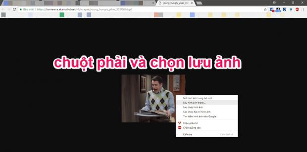 B3: Tại giao diện chuyển tiếp, bạn nhấn chuột phải vào vị trí ảnh GIF, chọn Lưu hình ảnh thành... (Save Image As) và lựa chọn vị trí lưu trữ là xong.