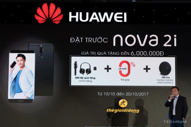 Huawei Nova 2i sẽ bắt đầu cho đặt hàng trên website Thế Giới Di Động từ ngày 10/10 đến hết ngày 20/10/2017 với mức giá 5.990.000VNĐ. Khi đặt hàng trước người dùng sẽ có cơ hội nhận được nhiều ưu đãi hấp dẫn bao gồm:
