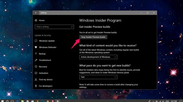 Hủy bỏ đăng ký chương trình Windows Insider
