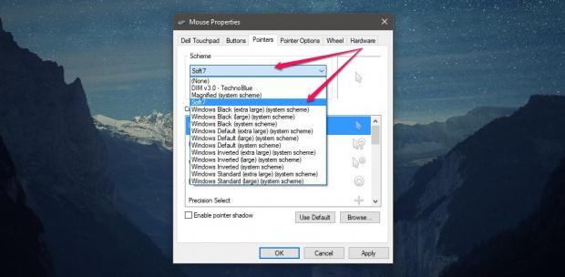 Tại khung thiết lập Mouse Properties bạn mở tab Pointers > nhấn vào trình đơn ở mục Scheme > chọn gói skin cần thay đổi và nhấn Apply + OK để lưu là xong.