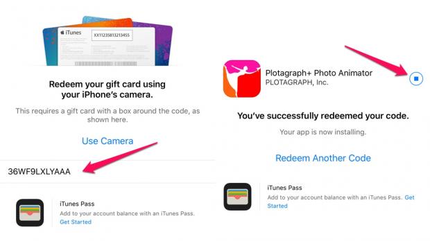 Khi chuyển sang AppStore bạn cần nhập lại mật khẩu iTunes Store để xác nhận thông tin và giao diện tự động chuyển tới trang nhận Gift Card kèm mã redeem miễn phí phía dưới. Nhấn vào nút Redeem ở góc trên bên phải màn hình và ứng dụng Plotagraph+ sẽ tự động tải về miễn phí.