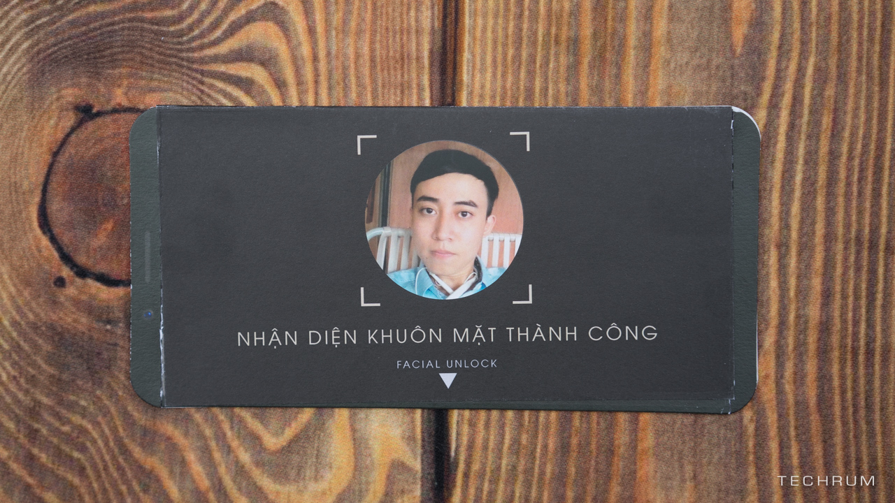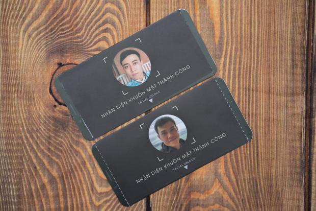 'Nhận diện khuôn mặt thành công', còn khi lật lớp giấy lên sẽ là thông tin chi tiết về buổi ra mắt cũng như hình ảnh đại sứ thương hiệu Sơn Tùng M-TP và dòng chữ