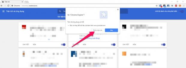 Cuối cùng nhấn thêm Tiện ích mở rộng là xong.