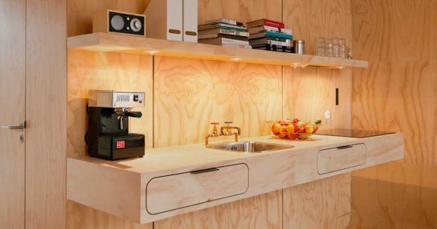 Các cửa sổ có thể được thêm vào bất cứ khi nào chủ nhà muốn. Những phần nội thất như nhà bếp, nhà tắm có thể được lắp thêm vào qua các khối riêng. Bên trong nhà được phủ một lớp ván ép mang lại sự đơn giản và gần gũi với thiên nhiên.