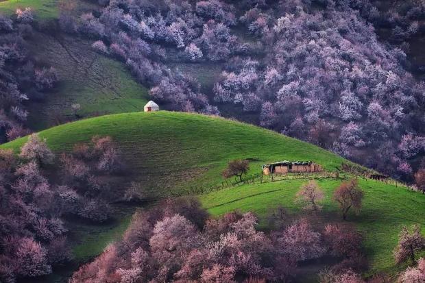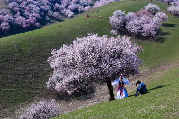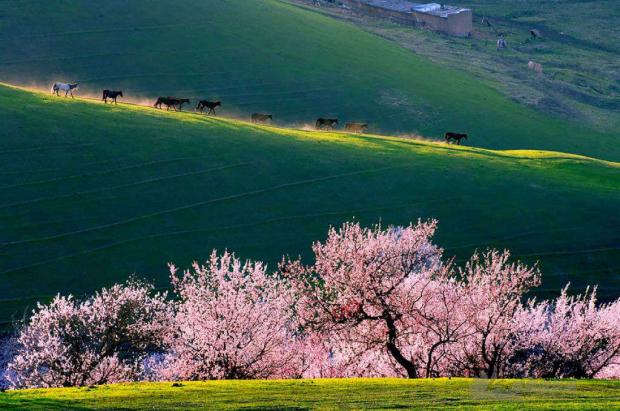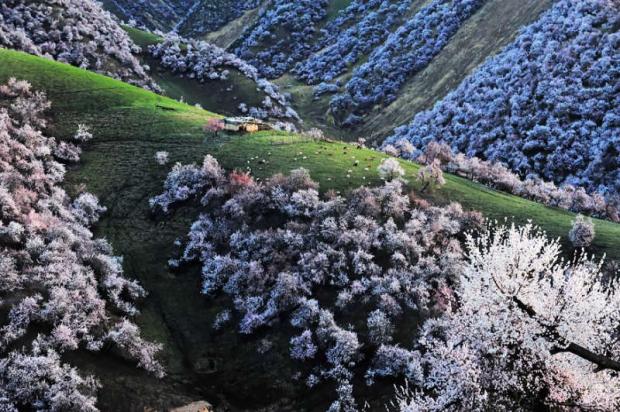 Tân Cương nằm ở phía tây bắc Trung Quốc. Tới tham quan thung lũng Y Ly xinh đẹp, bạn có thể thưởng ngoạn những chùm mai đẹp tựa khung cảnh thần tiên.