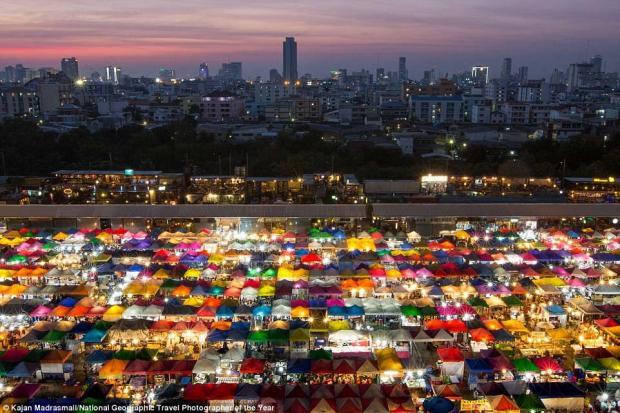 Khi màn đêm buông xuống ở Bangkok, Thái Lan, khu chợ rực rỡ sắc màu này trở nên sống động và nhộn nhịp.