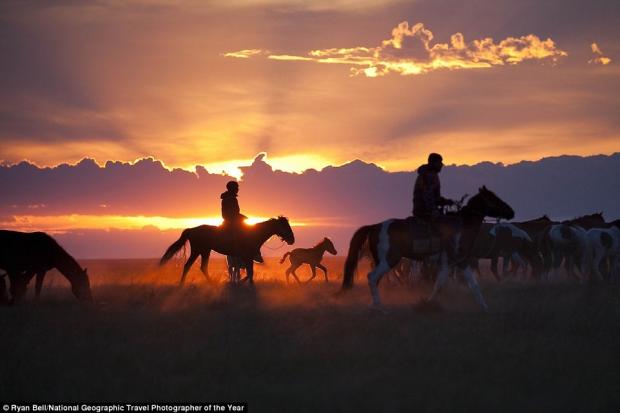 Ở vùng Pavlodar, Kazakhstan, những người chăn thả lùa đàn gia súc và nơi nghỉ đêm. Họ phải bảo vệ chúng vì có và sói đồng cỏ.